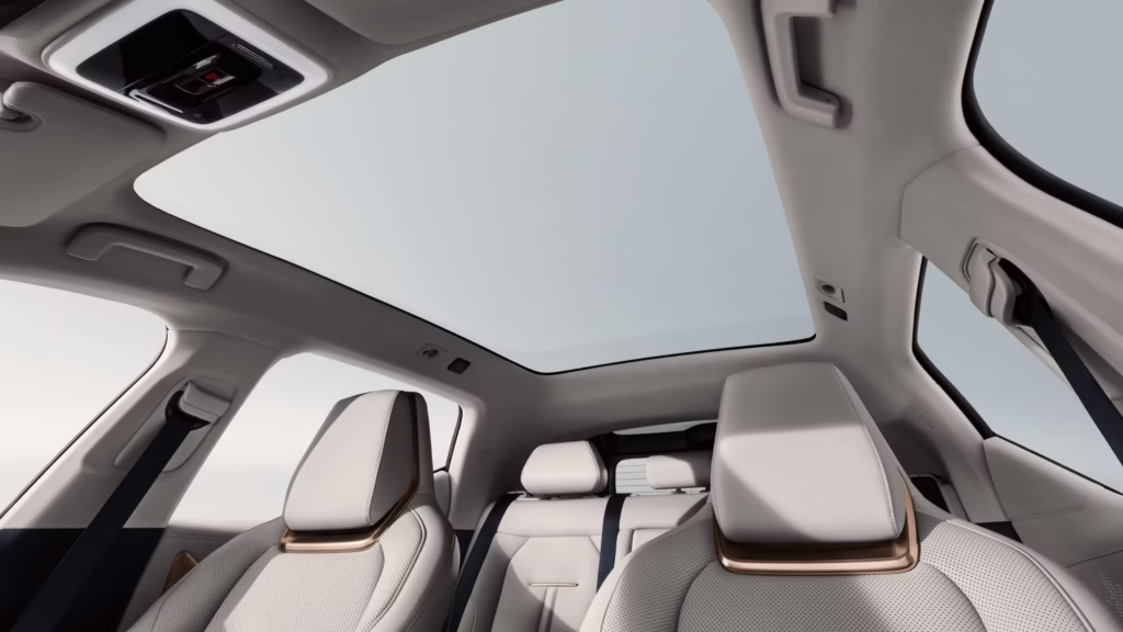With an area of 1.21 square meters, the panoramic skylight allows daylight to fill the interior.